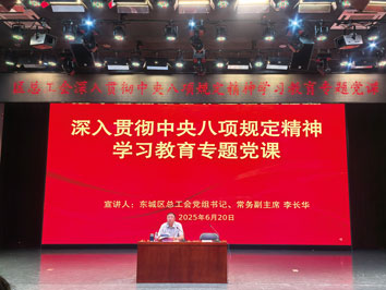 为推动深入贯彻中央八项规定精神学习教育走深走实,近日,区总工会党组书记、常务副主席李长华以“扎实推进工会干部职工作风建设,大力服务工会工作高质量发展”为题,为机关、事业单位全体党员干部讲专题党课。